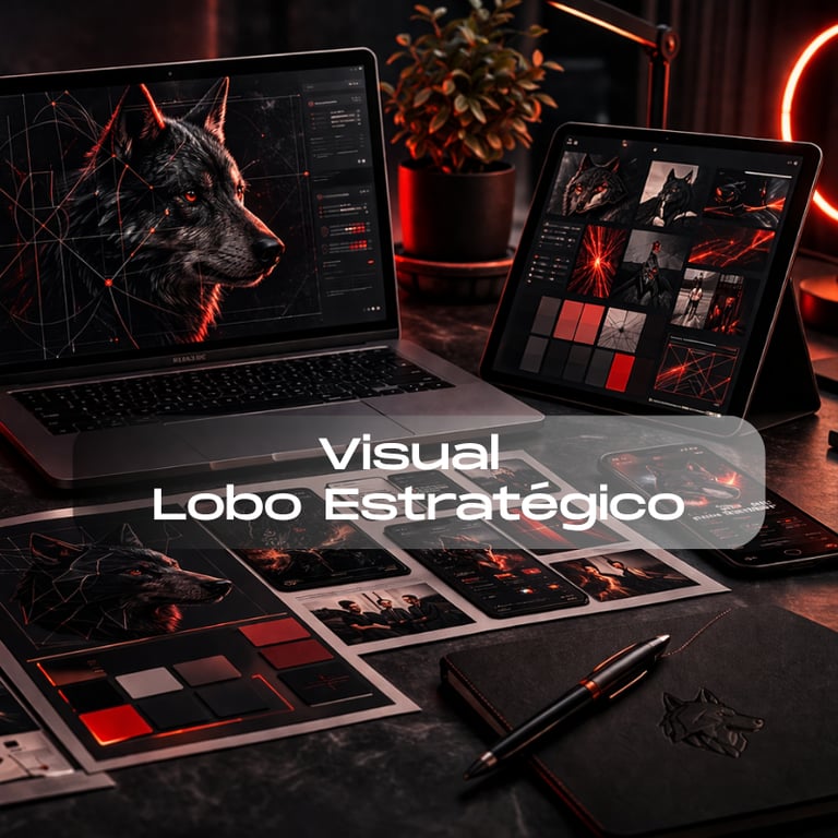 Uma seleção de materiais, identidades, páginas e composições que mostram como o Lobo Estratégico organiza presença digital com mais direção, coerência e impacto visual.